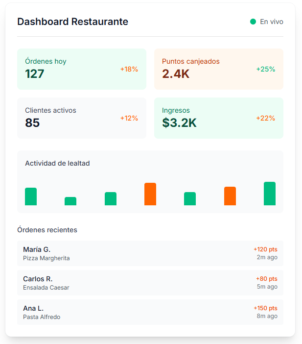 Configura tu sistema de lealtad completo en menos tiempo del que toma preparar un menú especial.